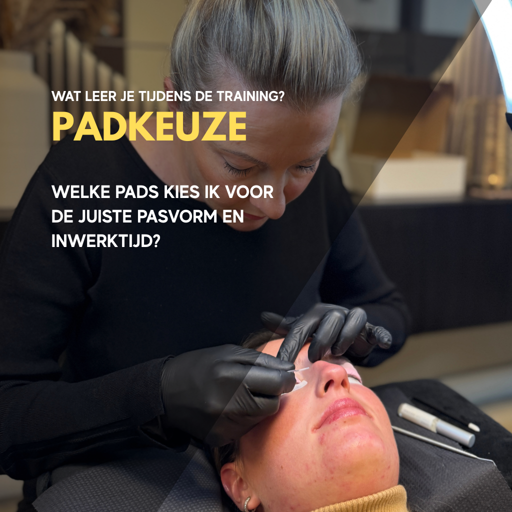 Theorie – We starten met de basisprincipes van een wimperlift: productkennis, haarstructuur, lash health en contra-indicaties.